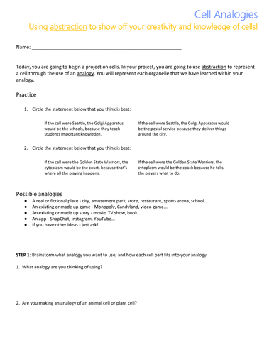 When using a weak analogy, a person may point out all the. The comparison in allegory is implicit. Cell city analogy in a far away city called grant city, the main export and production product is the steel widget. Amy constructs an analogy between clouds and mares. Dec 23, 1995 · 1.